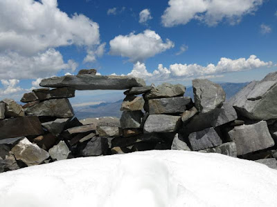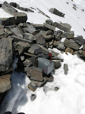 Ho! A rock shelter marking the summit log.