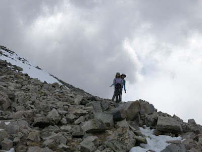 We were somewhat relieved when we got off the steeper part of the rock pile and back onto some semblance of a smooth trail without any weather beyond threatening clouds.