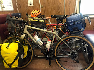 Happy bikes barely squeezed in, but the conductor thankfully didn't care that they stuck out into the aisle a little. Vive le cyclotourisme!