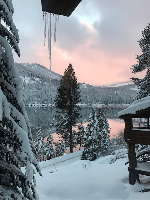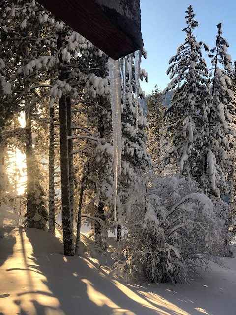 The beginning of the trip went to plan -- we had an easy drive up to Linda's, relaxed a bit, and enjoyed an excellent day of skiing at Yuba Pass. Then the next "atmospheric river" moved in, soaking the state in yet another deluge of precipitation. This one was quite warm, so it poured and poured and poured in Downieville, and it wasn't clear if it would be raining or snowing if we went up the hill to ski -- plus the visibility would be bad -- so we chose to hole up in the house and read.