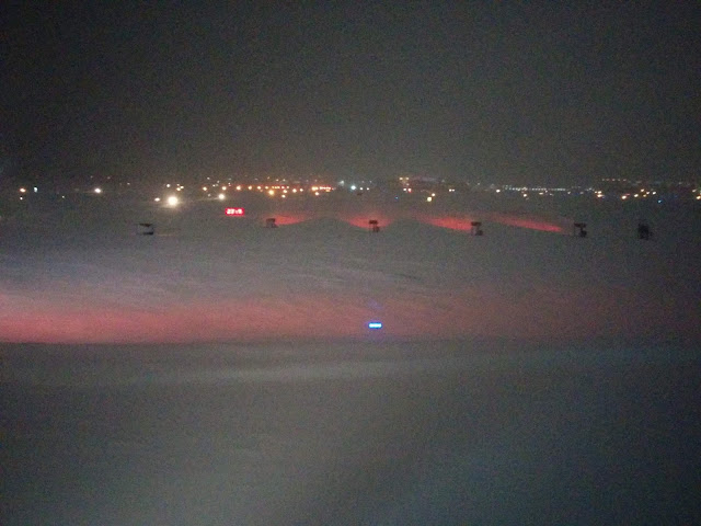 On the approach into Boston it was apparent that they got more than a dusting. I don't think I've ever landed on a white runway before. It's hard to tell from the picture, but many of the runway lights were buried under the snow. Not what one usually sees upon landing.