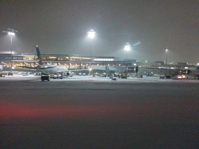Friday night rolls around and it was back to the airport for me. All looks well; the main snowstorm is done and only a dusting of new snow is expected. It was a blessedly uneventful flight, and the view from the plane of the Cascades blanketed with a new layer of snow under the full moon just after takeoff was amazing.
