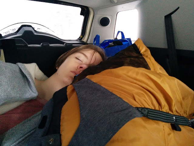 Clever teenager practiced her usual "I'm bored in the car" strategy as we worked our way up and over Yuba Pass.