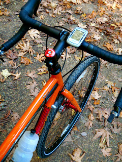 New commute/adventure bike: the Salsa Vaya. The shop (Roaring Mouse) was nice enough to build up an orange frame with a triple for me, even though the orange one doesn't usually come with this gearing. This thing is awesome -- fun to ride on the road, while still quite capable on dirt singletrack. She likes climbing dirt roads best. And she is definitely a she, as well as being a big happy orange bunny rabbit of a bike.