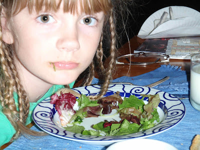 Nimue is a triceratops. She informs me that this type of dinosaur only eats salad "kitty-style". Yet another example of our continuing Calvin-and-Hobbes-esque existence.