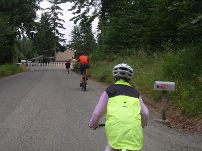 Three-generation bike rides. My mom is in the lead on her recumbent, my dad was behind me.