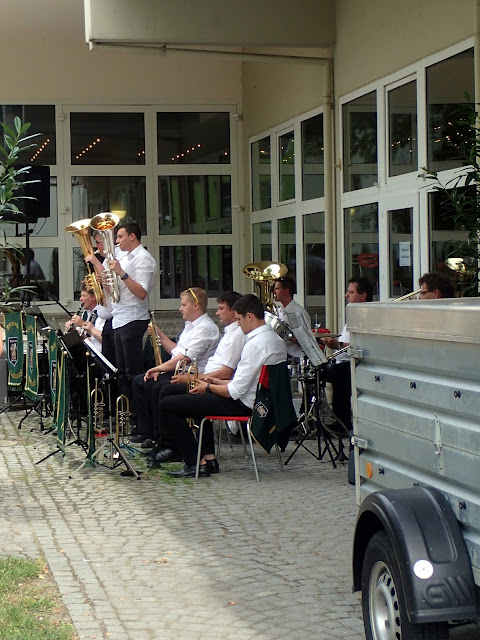 Despite the kiddo being tired, we took a few minutes to walk down to see the museum in town and to enjoy the river in the late afternoon. On our way down to the river, we stopped to listen to a brass band playing oompah music at one of the outdoor cafe areas.
