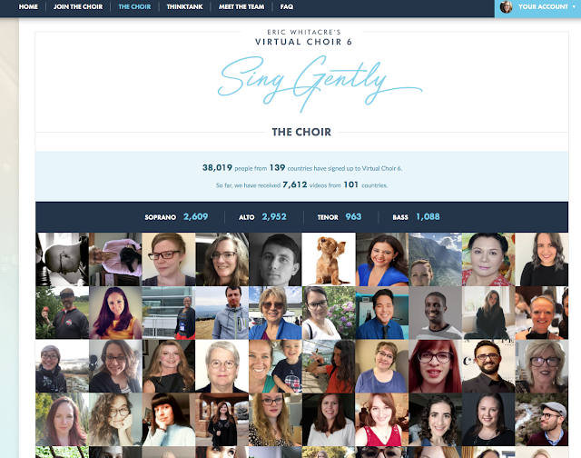 Ma July 21, 2020 #musicOne of the virtual projects that I participated in last May has finally been put together — Eric Whitacre’s Virtual Choir 6. Go here to see it or google "Virtual Choir 6" to learn a bit about the project. With over 17,000 singers, you won’t actually see me, but I’m in there somewhere and it is an interesting example of a large online collaborative choir.