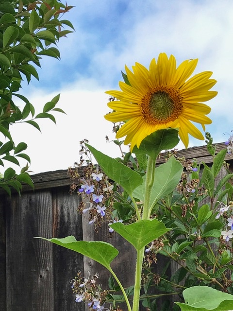 Ma July 25, 2020 #yardI’m not sure where it came from, but we were amused to notice an unexpected sunflower blooming amidst the plants in the back bed earlier this week. Happy July.