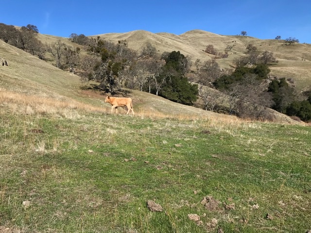 and cows both young and old munching on the fresh new grass. I accidentally deviated from the real trail onto a cow trail at one point, but the landmarks were such that it was easy to navigate back to the car. A most excellent hike!