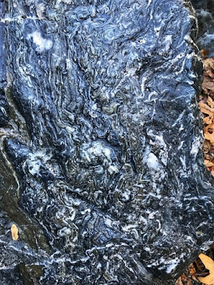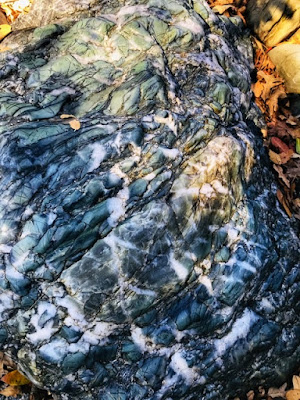 You may notice the excellent green color of the rocks above. This area is chock full of scenic metamorphic rocks with swirls of fantastical coloration. It is fun stuff to scramble through, both visually and because the rock is hard enough to provide many good hand and footholds.