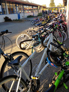 It's heartening to know that people's habits are changing, at least locally -- it was nothing like this when we started at the school a mere 5 years ago. Today, on a normal day, we are at about 50% self-propelled; yesterday it was more like 90%, to my eyes, which bodes well for the rest of the year!