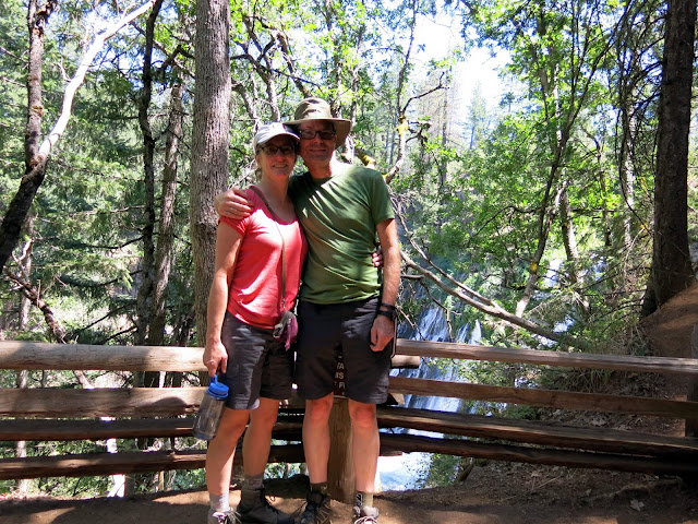 And finally, another real falls -- this double falls is Paulina Falls in Newberry Crater National Monument, a short hike down the Peter Skene Ogden Trail from Paulina Lake. The trail continues down for miles and miles along the creek, passing several other waterfalls and a natural waterslide, which would make for a fine outing had we had all day left (we didn't, and had to make to with also making a brief stop at McKay Falls down near the bottom so I could play in the creek).