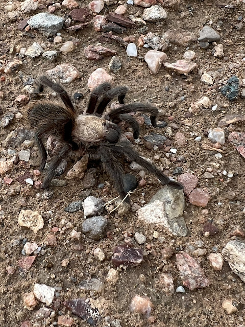 Ma July 01, 2024Add Texas Brown Tarantula to the list of critters we see around the yard. This one happened to come by during the time Kean and I were exchanging summer art prompts, so picked "spider" for this week and here is my offering.