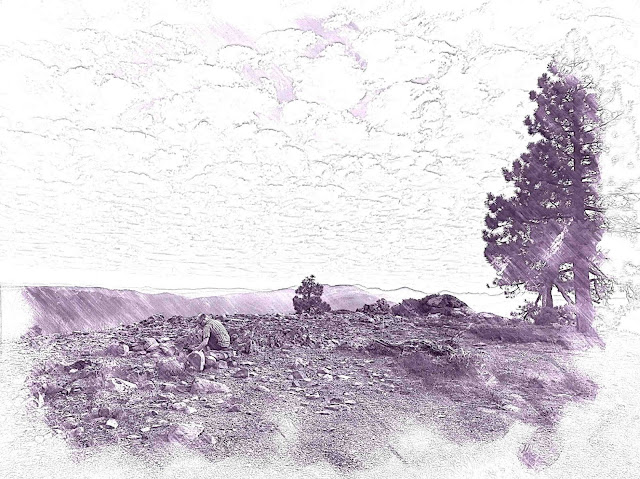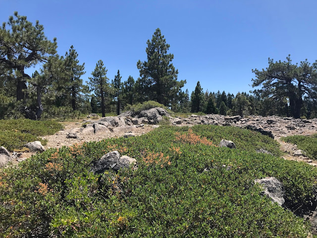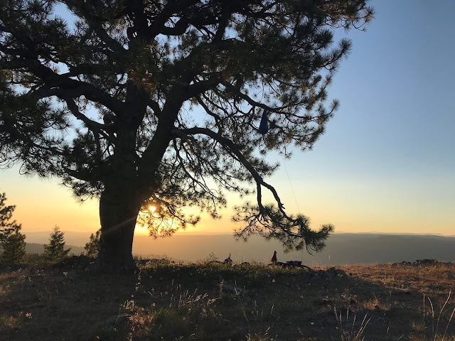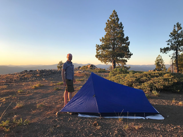 One nice thing about the National Forest around here is that you can pretty much camp anywhere you find a nice spot. Once up on the ridge, a nice spot is not hard to find -- as long as you are carrying water. We were quite conscious carrying spare water, given that the previous year's summer bikepacking weekend was challenged by water sources that were unexpectedly few and far between.