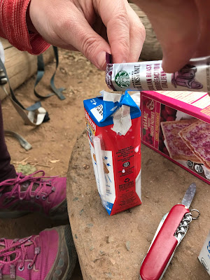 Later in the week, Nim and I took a wee backpacking trip up Black Mountain. We went ultralight, with just a tarp, sleeping bag/quilt, a bag of KFC for dinner, and a box of toaster pastries (aka Pop-Tarts, but these were a better brand) for breakfast. Our "dissolve a Starbucks Via pod into UHT milk and call it a latte" strategy was, in the kid's parlance, somewhat suss. One thing we noted was that by this point of the summer, the kid had slept outside, mostly unsheltered under the stars, more summer nights that not. This semi-feral existence is indeed properly appreciated.