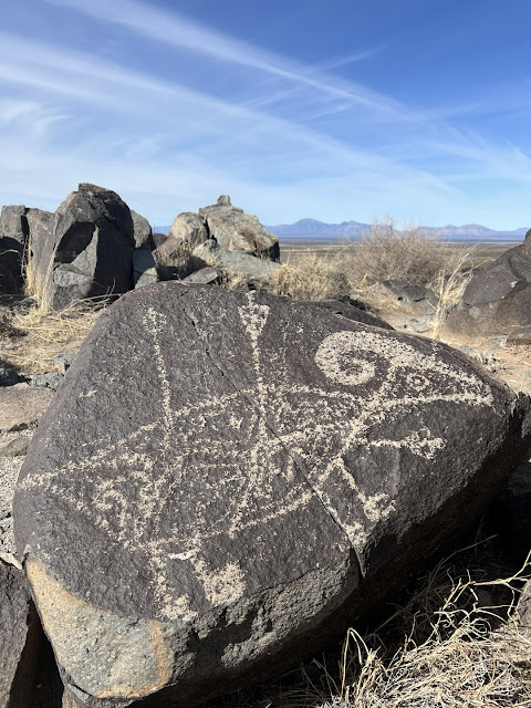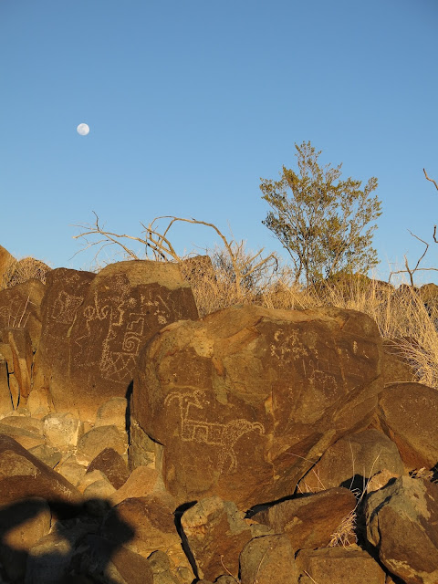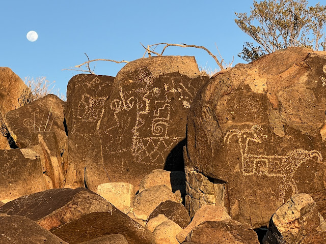 Later we found good BLM camping at Three Rivers Petroglyph site. We enjoyed the full moon and poking around the 21,000!! petroglyphs scattered among the rocky ridge.