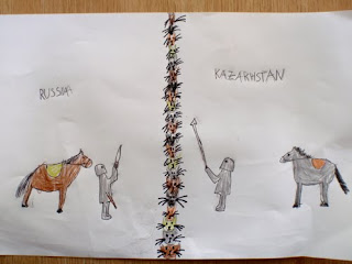 I'm not sure what the kitty-head militarized zone between Russia and Kazakhstan means, but this is yet another example of Nim's interesting drawings lately.
