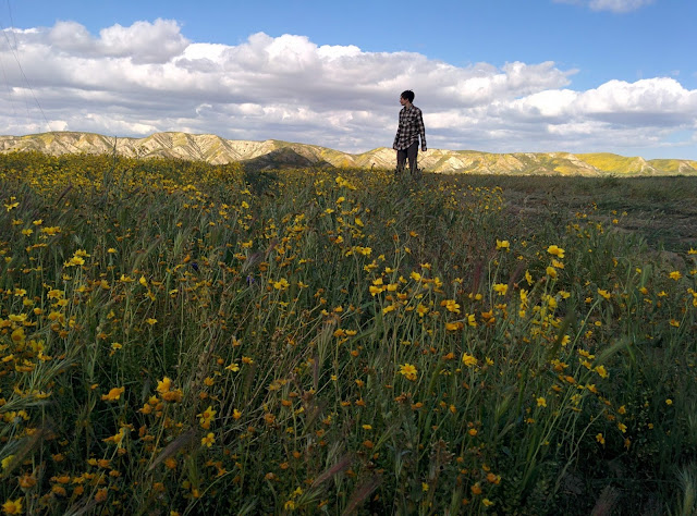 Ma April 18, 2017 #family #vacationTo break the drive up, we planned to stop and maybe camp at the Carrizo Plain National Monument on the way down to Joshua Tree. The Carrizo Plain is usually an out-of-the-way backwater, not near anything, and makes a quiet escape away from civilization. This year, it looked like we were going to hit the wildflower peak as well, which was an added bonus.