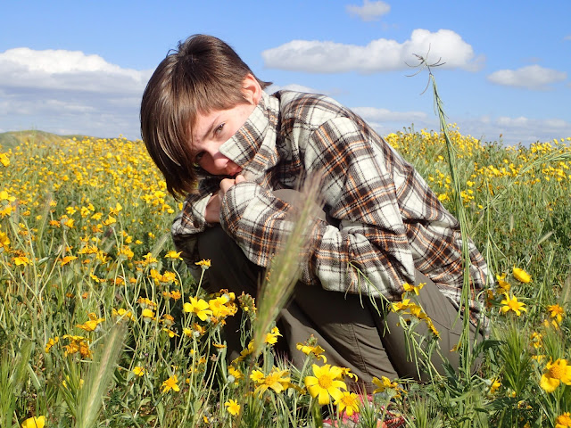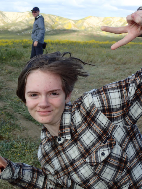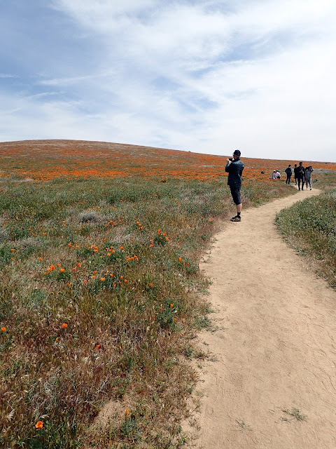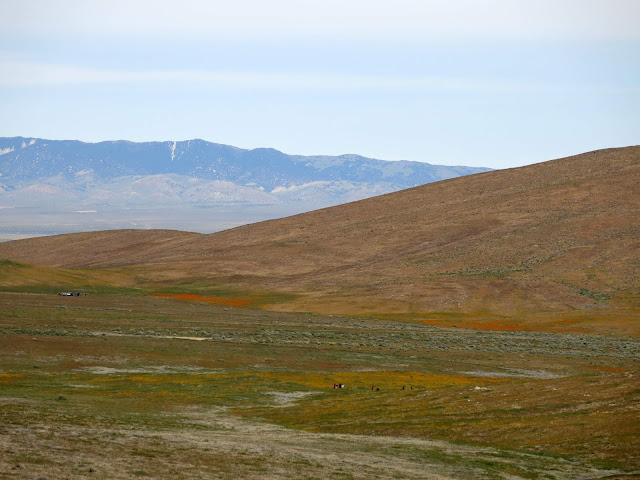 Due to this alteration in route, I realized we were going to go right by the Antelope Valley Poppy Reserve on our way to Joshua Tree, so we stopped to see the poppies. Word on the web was that the flowers here were a little past their prime, and it was now a weekday, so I figured it wouldn't be as busy as Carrizo was.