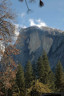 The rain in the valley did lead to a nice dusting of snow on Half Dome Saturday morning. We spent a cozy night in our tent cabin.